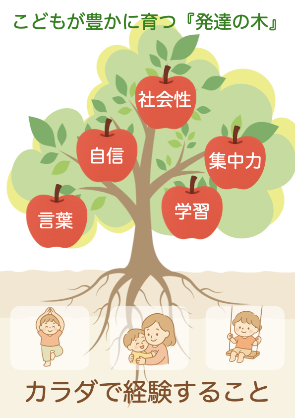 こうしてしっかりとした土台が整うことで、「言葉」や「学習能力」「社会性」など、大切な実りが豊かに育まれていくのです。